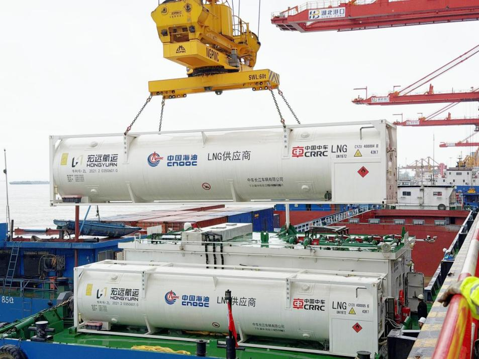 自2023年1月31日起,LNG动力船舶可换装燃料供气系统在“宏远武汉”“宏远徐州”两艘LNG单燃料船舶上循环使用。截至目前,两艘船舶已在京杭大运河与长江下游安全行驶超20万公里,完成能源换装70艘次,加注能源超2000吨,验证了LNG换罐补给模式在解决船舶LNG加注难题上的显著成效。