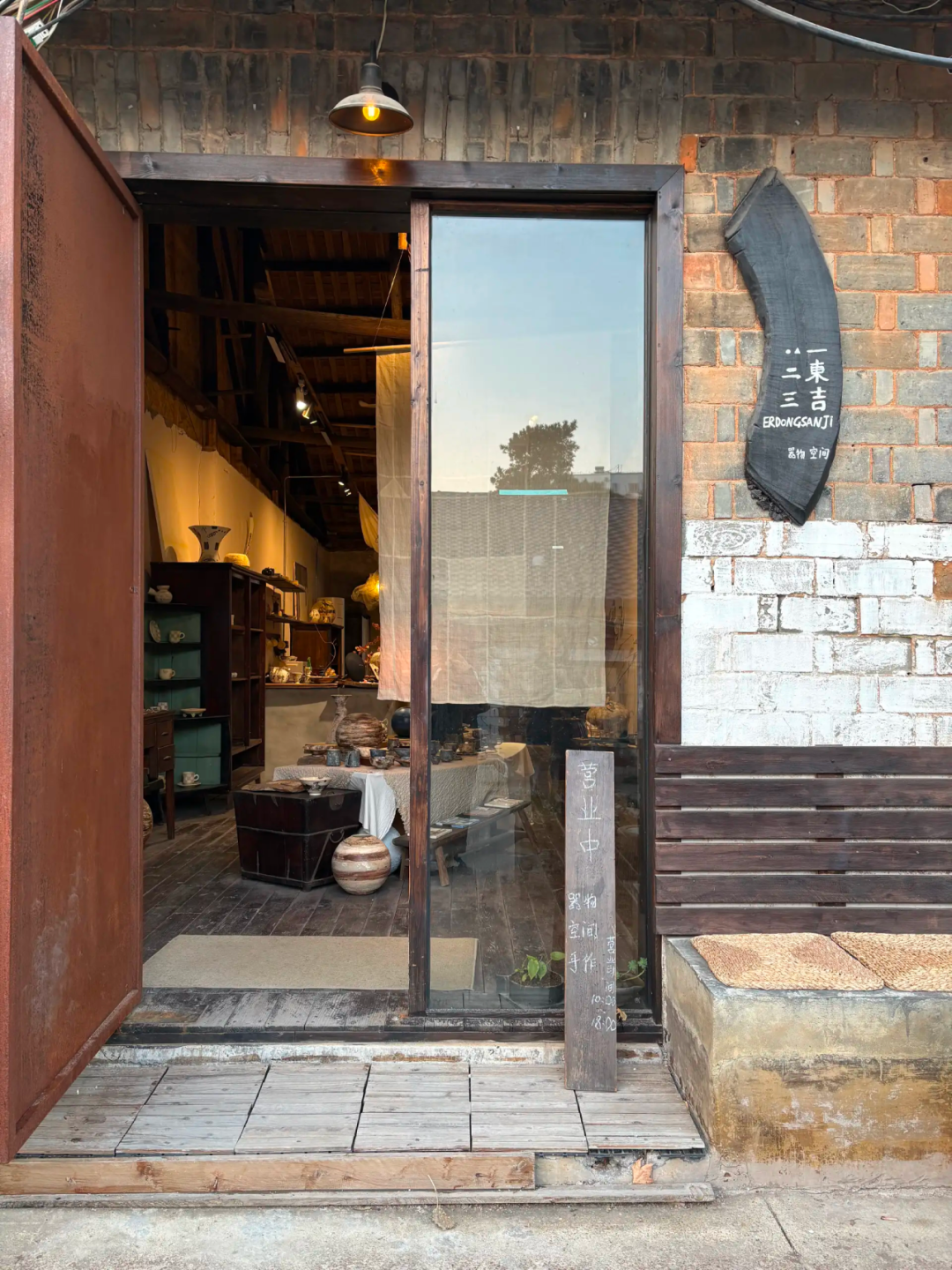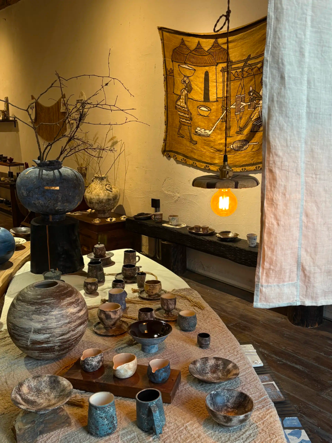 想找更有格调、成体系的器物,得钻进雕塑瓷厂的工作室和买手店。外街大多是普通货,别浪费时间,径直往里面的小巷和小院走。这次探的每盐所、在野商店、二东三吉、一方庭等,主理人审美严苛,选品温暖而具匠心,从素雅的日用到个性单品皆有。这里的关键是“为设计买单”,价格普遍偏高。如果预算有限,权当逛美术馆也非常享受。