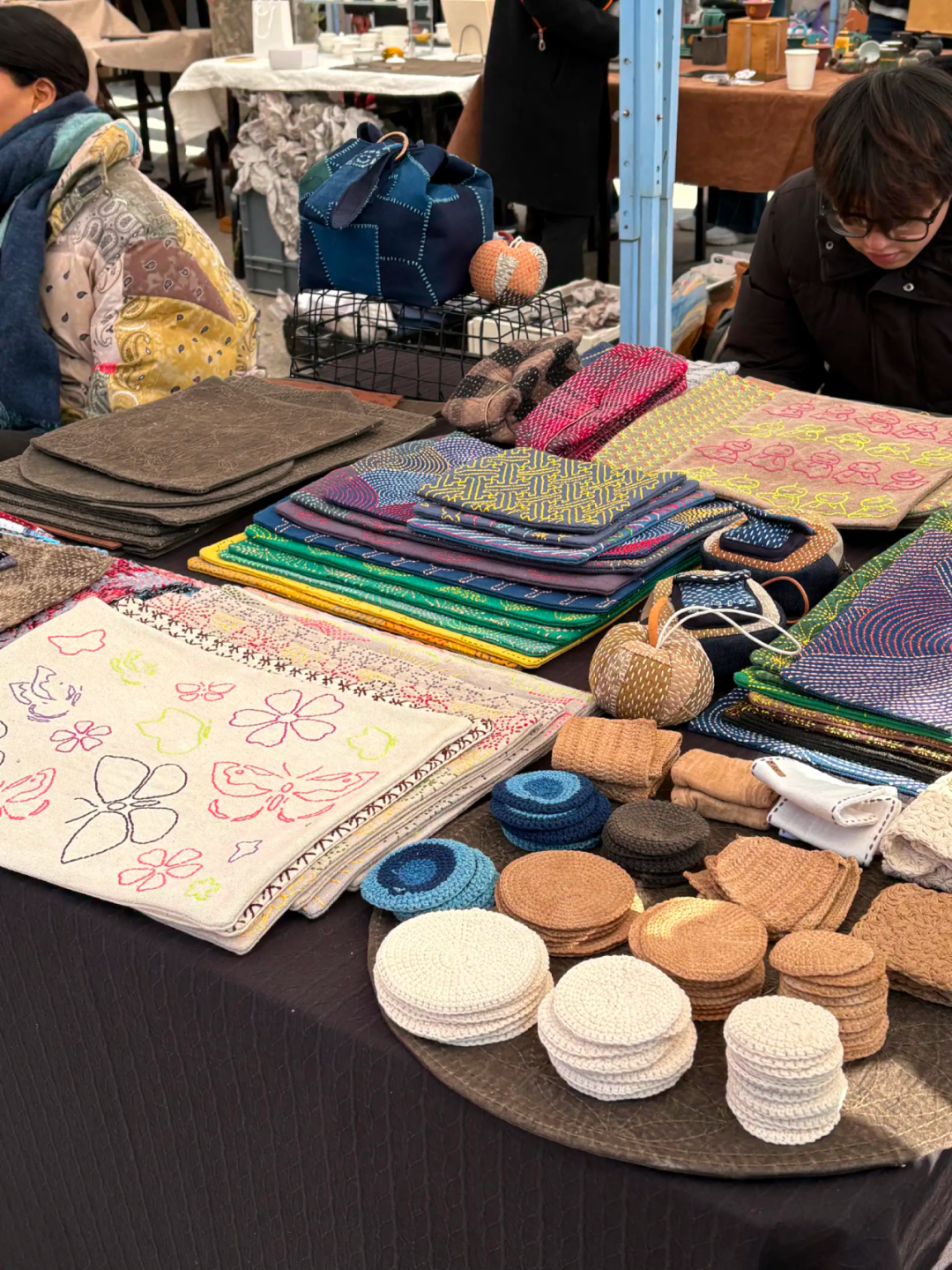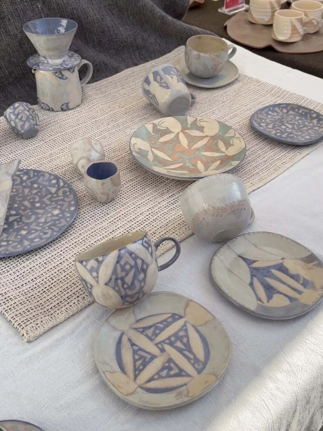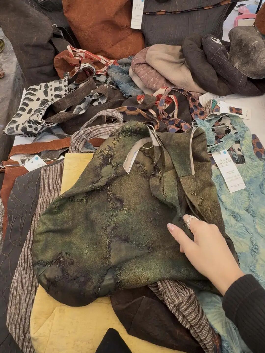 摊主大多是创作者本人:有本地慢慢成长的陶艺家,也有从韩国、日本等地远道而来的手作人。作品从陶器、木雕到布艺,琳琅满目,看中便大胆讲价。逛一上午收获一只植物染的缎面葫芦包,温润的色泽来自茶叶和板蓝根,越看越爱。